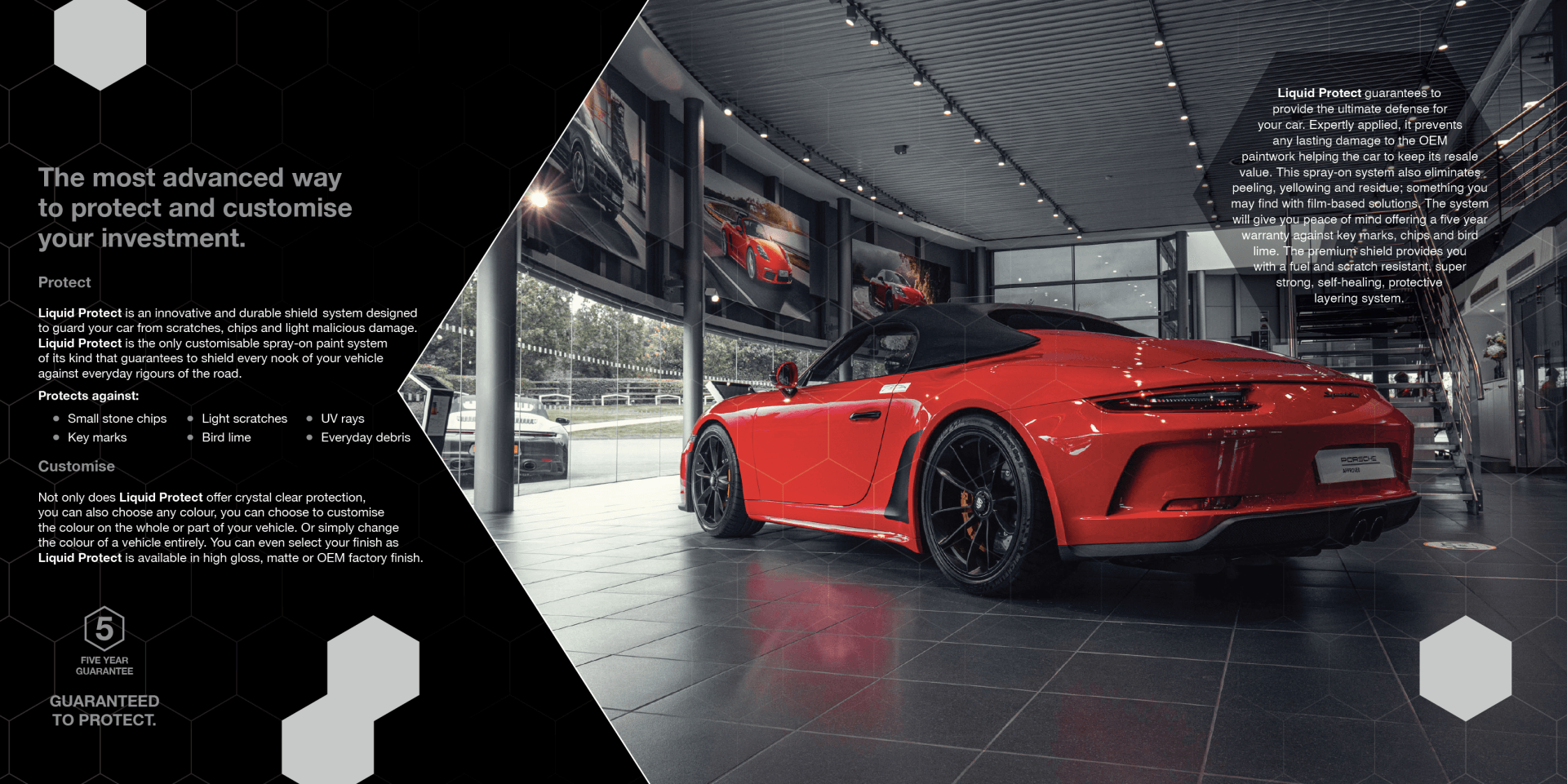 Full colour CMYK with Foil, x2 Varnish [Matt & Gloss] Spot Silver ink specific to each divisional brand i.e Porsche example shown.