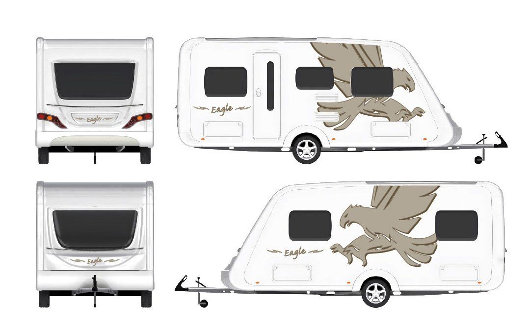 Concept design for a series of birds of prey vinyl caravan livery - Eagle, Osprey, Kestrel, Falcon or Swift.